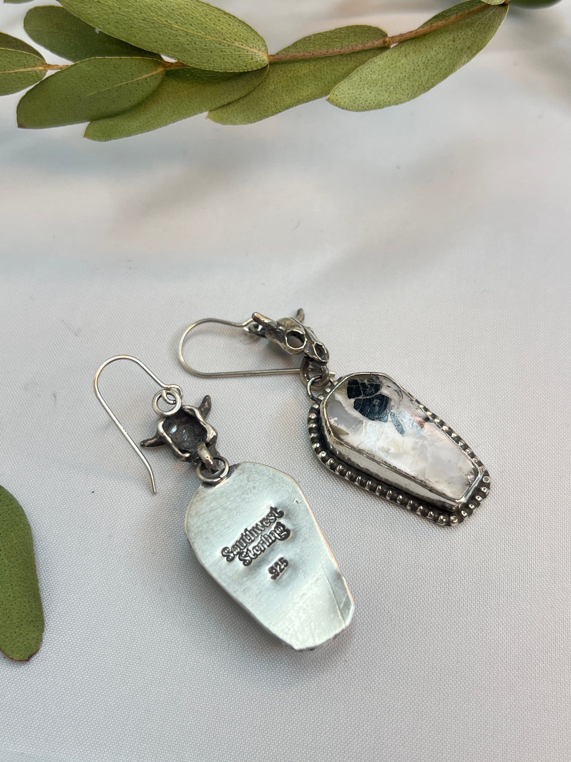 Buffalo Skull & White Buffalo Turquoiuse Coffin Cut Earrings