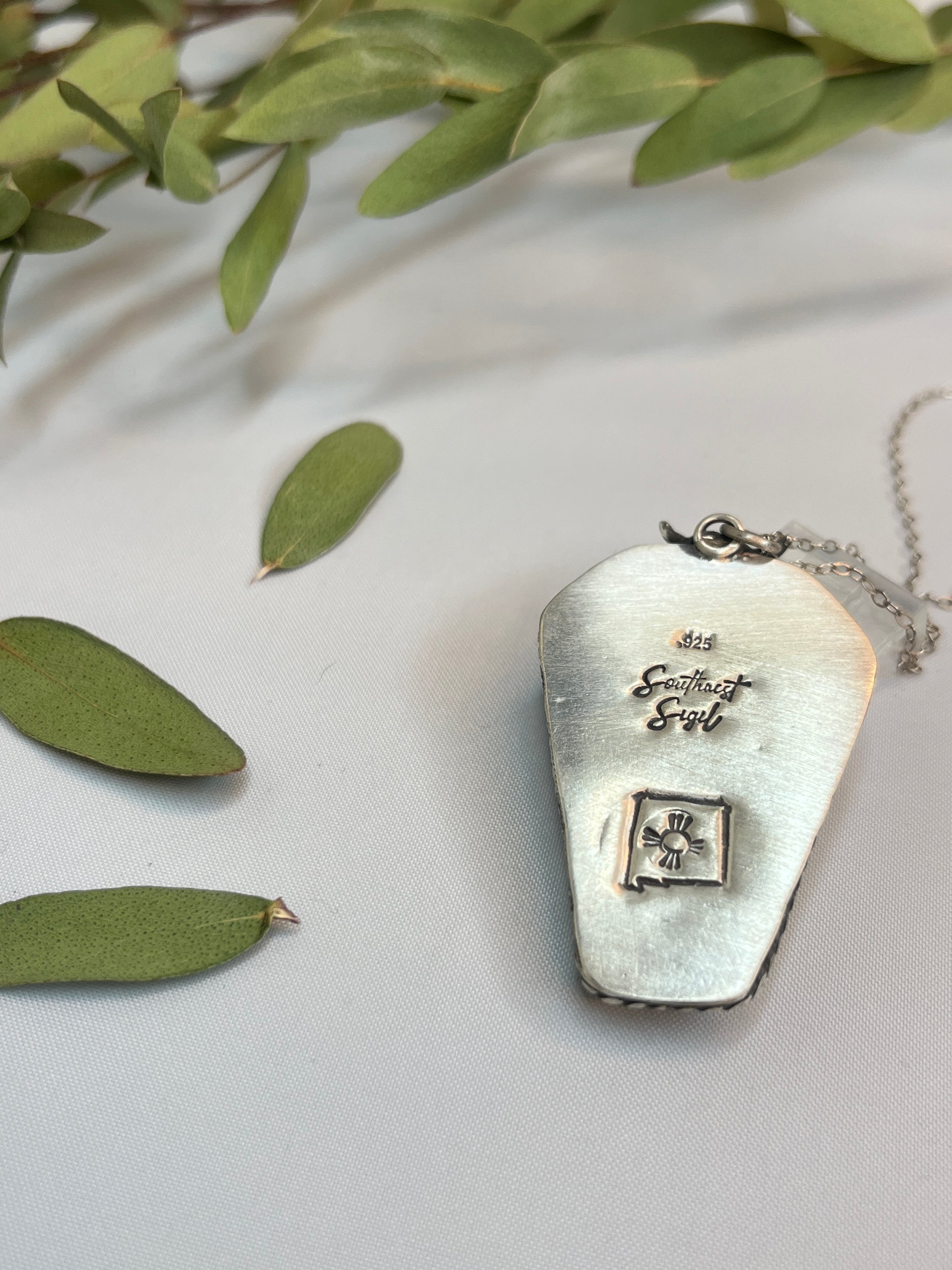 Buffalo Skull & Labradorite Coffin Cut Pendant