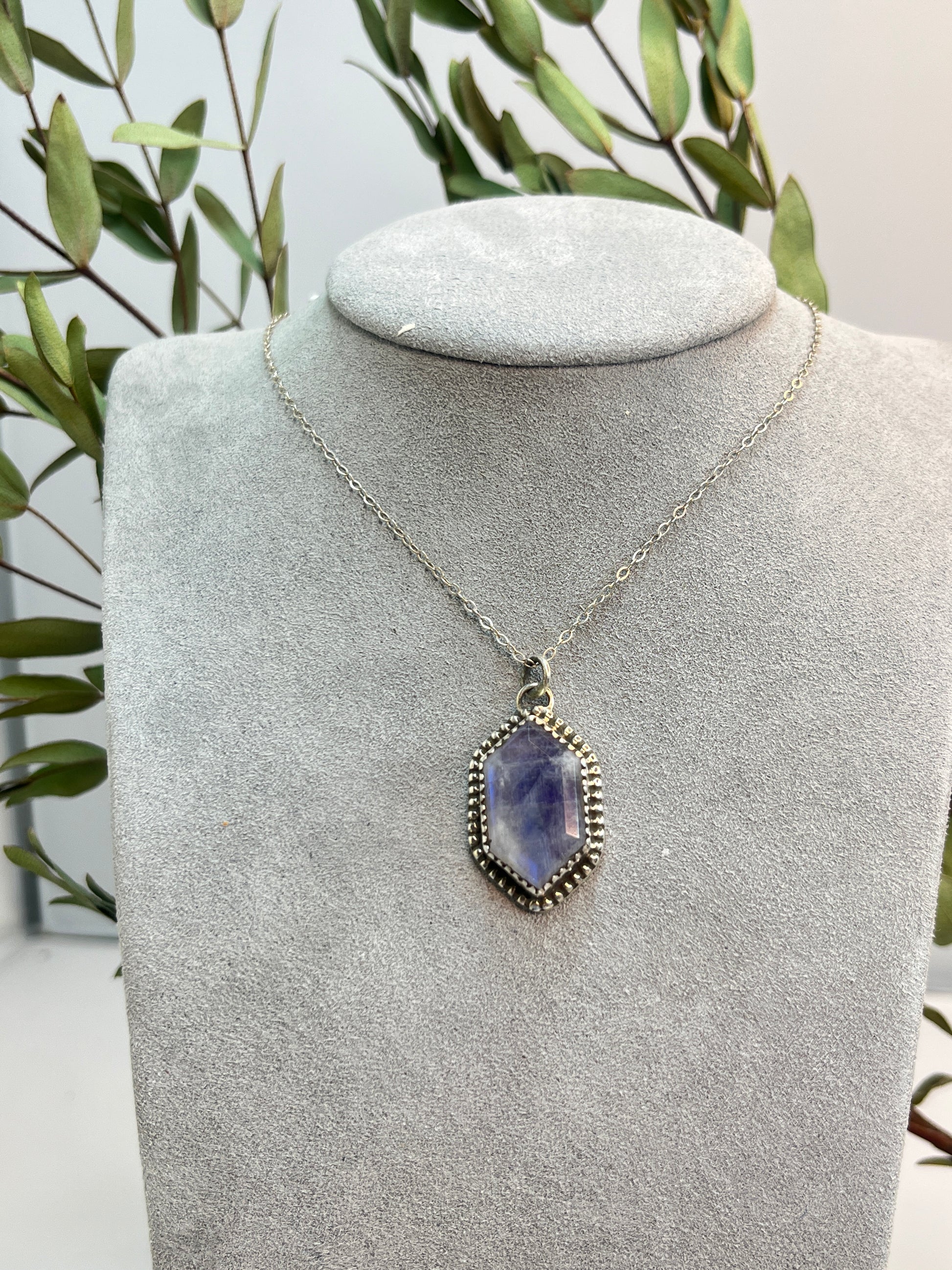 Moonstone Facet Cut Elongated Hexagon Pendant